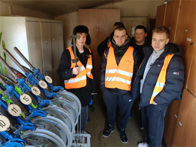 We wtorek 4 marca 2025 r. uczniowie klasy IV R z panem Boryckim byli na wycieczce zawodowej na terenie Sekcji Eksploatacji Gdynia, stacja Gdynia Postojowa, gdzie uczniowie w obecności zespołu diagnostycznego urządzeń srk przeprowadzili pomiar siły wykleszczenia dźwigni zwrotnicowej.
