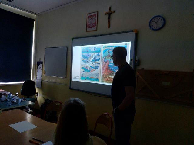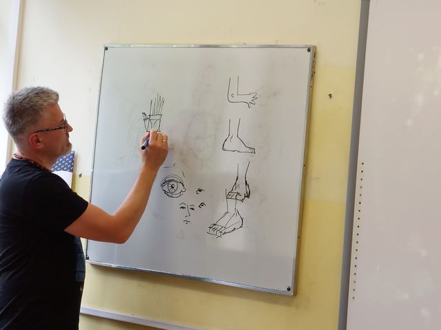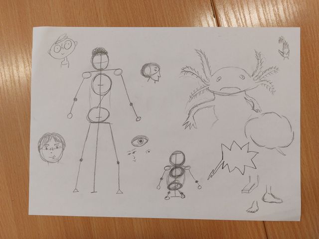 Hasłem przewodnim warsztatów był komiks, a zwłaszcza rysowanie postaci. Zajęcia rozpoczęły się krótkim omówieniem różnych technik wykorzystywanych w tworzeniu komiksów, następnie uczestnicy poznawali zasady rysowania sylwetek w różnych pozycjach i w ruchu oraz elementów budowy postaci, a potem ćwiczyli tworzenie własnych prac.