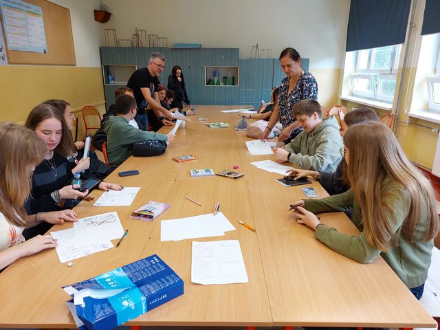 W ramach realizacji Narodowego Programu Rozwoju Czytelnictwa 2.0 w środę 11 czerwca 2025 r. uczniowie klas architektury krajobrazu uczestniczyli w warsztatach graficznych. Prowadził je pan Bartek Brosz – ilustrator, grafik, rysownik prasowy, autor książek dla dzieci, songwriter, twórca muzyki ilustracyjnej.