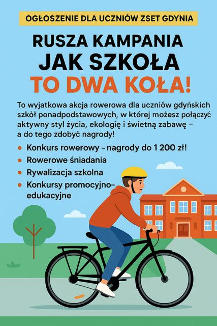 • Weź udział w konkursach dodatkowych i zgarniaj nagrody. Nie czekaj – wsiadaj na rower i pokaż, że w ZSET Gdynia „Jak szkoła to dwa koła”! 💪🚲🌍