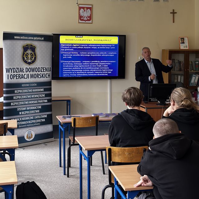 W czwartek 16 października 2025 r. w naszej szkole odbył się wykład dotyczący logistyki cywilnej i wojskowej dla klas czwartych i piątych o kierunkach technik logistyk i technik spedytor. Po wykładzie młodzież zapoznała się z ofertą edukacyjną Akademii Marynarki Wojennej w Gdyni.