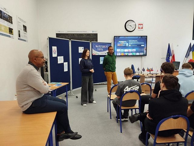 , a także klasę 1 K. Podczas spotkania przedstawili projekty Erasmus+ i eTwinning, które w ostatnich latach realizowane były w naszej szkole, zachęcając w ten sposób kolejnych uczniów do udziału w międzynarodowych inicjatywach.