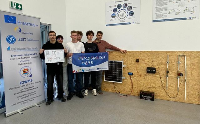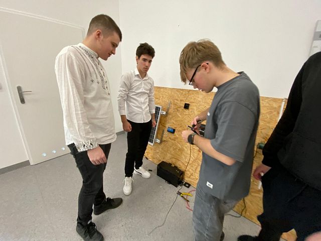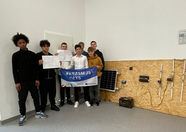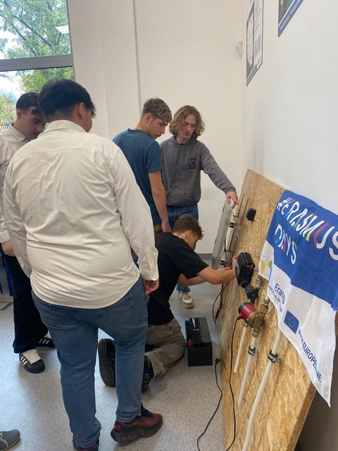 Uczniowie naszej szkoły podzielili się swoją wiedzą i doświadczeniem podczas ćwiczenia z uruchamiania pompy wodnej układu ogrzewania zasilanego systemem solarnym i inwerterem. Wspólnie z uczniami szkół partnerskich z