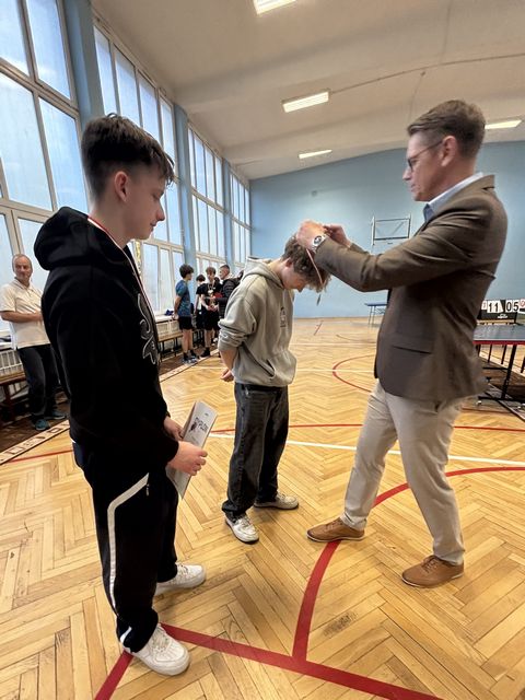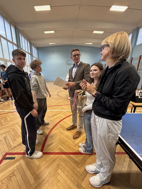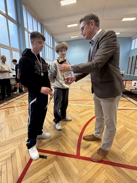 W środę 5 listopada 2025 r. w CKZiU nr 1 w Gdyni odbyły się Drużynowe Mistrzostwa Gdyni Szkół Ponadpodstawowych w Tenisie Stołowym. Naszą szkołę reprezentowali Adrian Lunkowski z kl. 1 L i Szymon Mizera z kl. 4 bL, którzy pokazali klasę i sportowego ducha – zajęli pierwsze miejsce, nie tracąc ani jednego punktu!