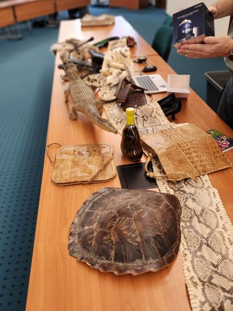 Ponadto przedstawili pracę w terminalach portowych i zapoznali uczestników wycieczki z założeniami Konwencji CITES. Jako ciekawostkę pokazali różne okazy zakazanych w przewozie transgranicznym zwierząt i produktów z nich wykonywanych.