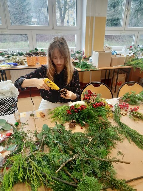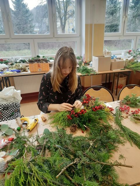 W środę i w czwartek 17-18 grudnia 2025 r., jak co roku przed świętami, uczniowie klasy drugiej i czwartej (oraz gościnnie piątej) architektury krajobrazu wykonywali pod kierunkiem nauczycieli przedmiotów zawodowych bożonarodzeniowe stroiki. Oto galeria ich prac: