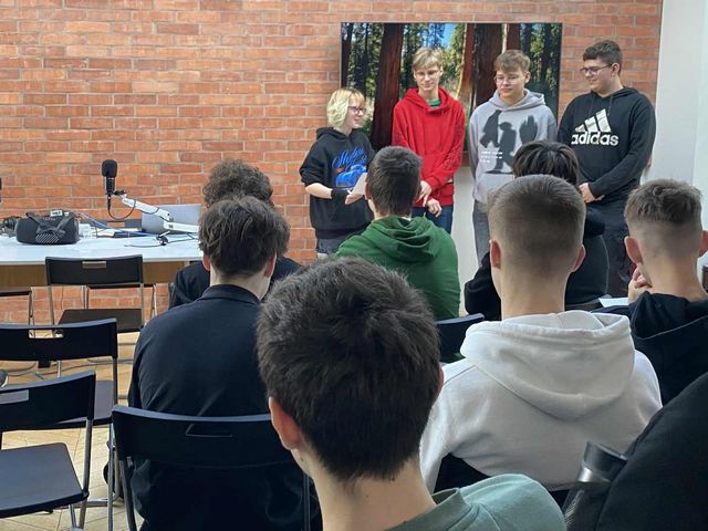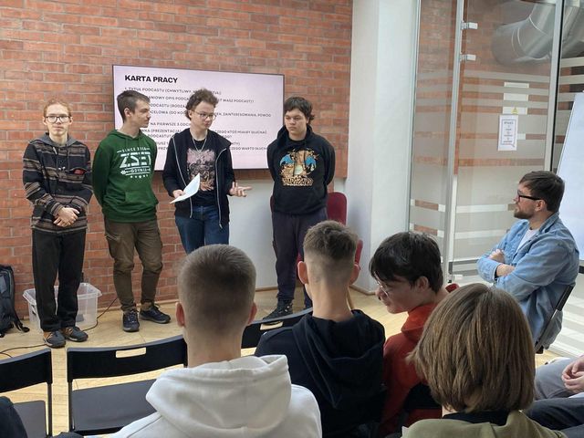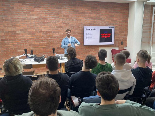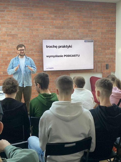 W czwartek 11 grudnia 2025 r. uczniowie klasy 2 K/R wraz z panią Laniecką oraz panią Studzińską udali się do Gdyńskiego Konsulatu Kultury na warsztaty dotyczące tworzenia własnych podcastów. Uczniowie dowiedzieli się, jak planować, nagrywać i publikować angażujące treści, poznali zarówno techniczne aspekty realizacji dźwięku, jak i merytoryczne zasady prowadzenia rozmowy. Następnie uczestnicy warsztatów w zespołach przygotowywali plany swoich podcastów. Tym, co najbardziej się wszystkim spodobało, było nagrywanie wstępu do podcastów przygotowanych przez zespoły.
