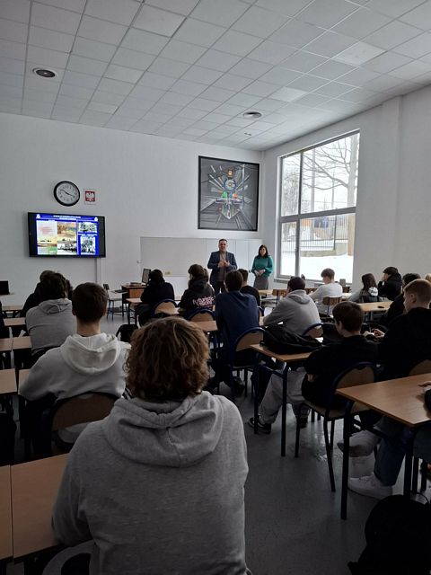 W czwartek 5 lutego 2026 r. w naszej szkole odbył się wykład pana Sebastian Dragi dotyczący działań wojennych i losów Gdyni podczas II wojny światowej. Uczniowie z dużym zainteresowaniem uczestniczyli w wykładzie. Zwłaszcza młodzież z klasy o profilu kolejowym z ciekawością słuchała informacji o Smoku Kaszubskim – opancerzonym pociągu Wojska Polskiego RP.