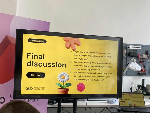 Pierwszy dzień rozpoczął się od uroczystego powitania przez dyrekcję szkoły Colegiul Tehnic Energetic w Kluż-Napoce. Następnie uczniowie wzięli udział w quizach o tematyce wodnej i technicznej (dotyczących m.in. przyrządów elektronicznych). Kolejnym punktem programu były warsztaty, podczas których uczestnicy zdobyli wiele ciekawych informacji na temat roli wody w organizmie człowieka, ekologii wody na świecie oraz cyklu wodnego. W międzynarodowych zespołach wykonali również zadanie praktyczne – stworzyli własne filtry wodne. Po południu młodzież odwiedziła lokalne przedsiębiorstwo wodociągowe Compania de Apă Someș S.A., a także Muzeum Wody „Leonida Țurta”.