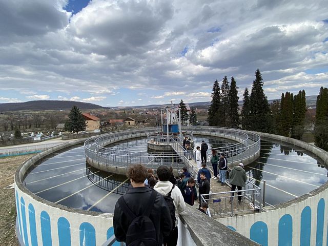 Kolejnym etapem była wizyta w zakładzie uzdatniania wody pitnej w Gilău. Uczniowie obserwowali instalacje elektryczne, systemy filtracji oraz układy pompowe.