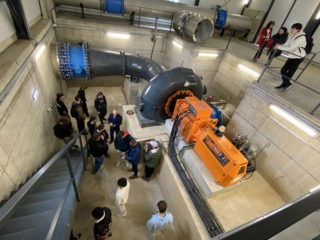 Szczególnym punktem była wizyta w mikroelektrowni, gdzie uczniowie zobaczyli w rzeczywistych warunkach pracę dwóch turbin Francisa. Była to wyjątkowa okazja, by prześledzić cały proces – od spadającej wody aż po wytworzenie energii elektrycznej.
