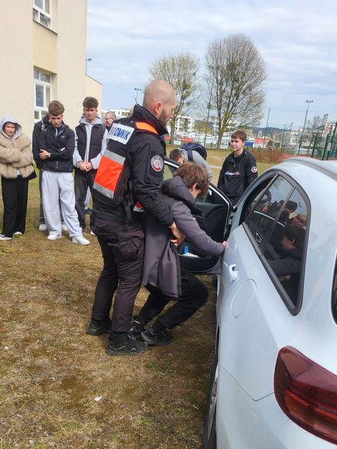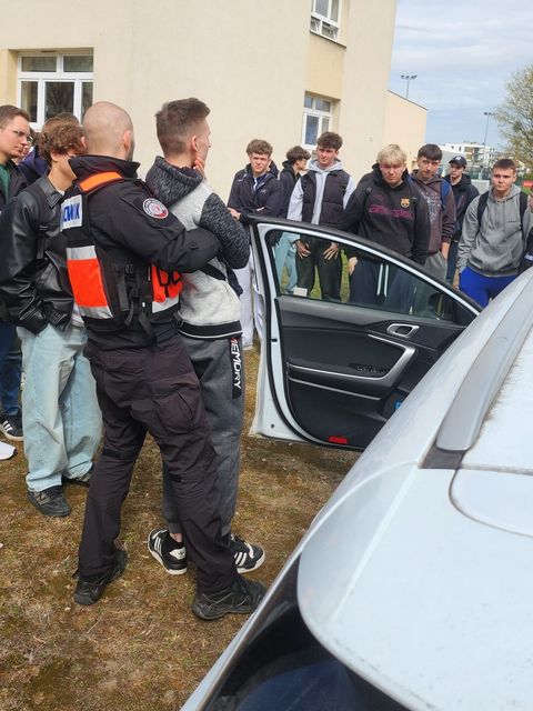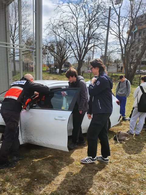 W piątek 17 kwietnia 2026 roku w naszej szkole odbyło się spotkanie z funkcjonariuszami Służby Celno-Skarbowej, którzy przeprowadzili szkolenie z udzielania pierwszej pomocy przedmedycznej i ewakuacji poszkodowanych z samochodu.
