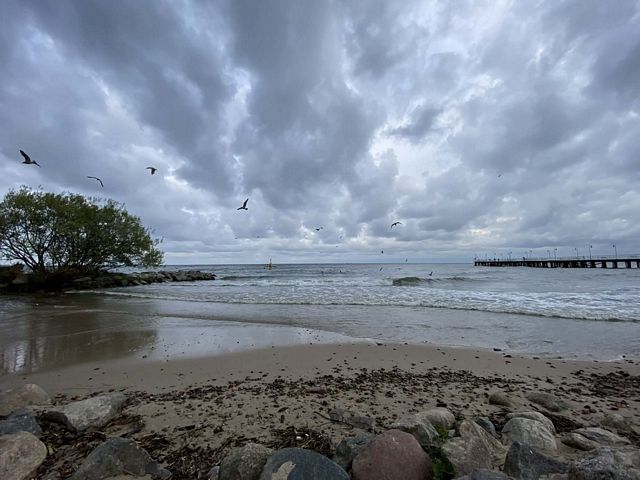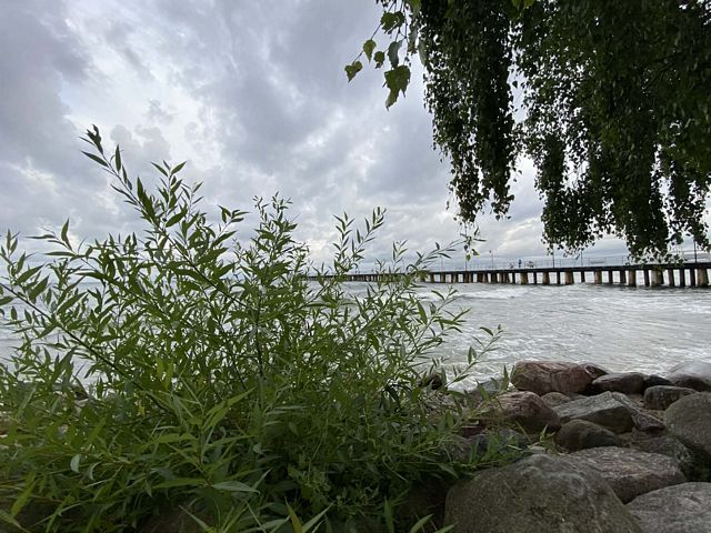 Ławka na bulwarze ze zniczem na dzień pamięci o tych, co zmarli na morzu (wczesne lato)Wschód słońca na bulwarze z molo (lato)Odpływ na bulwarze (wiosna)Autobus 192 we mgle odjeżdżający z przystanku Szczeblewskiego na wzgórzu św. Maksymiliana (jesień)Restauracja Anker po deszczu (jesień)