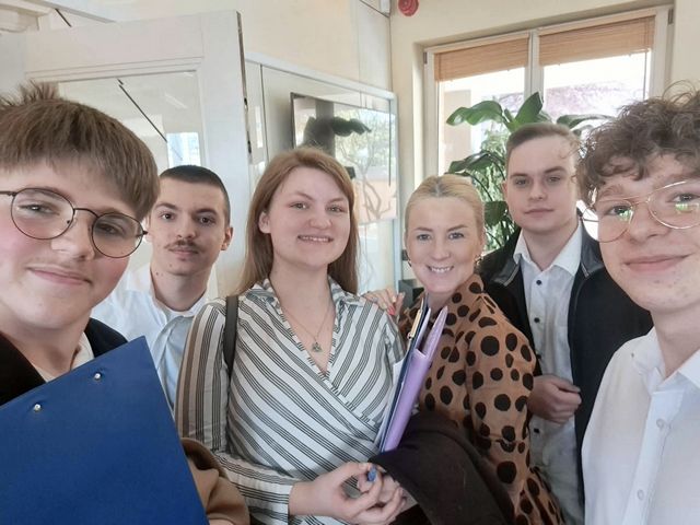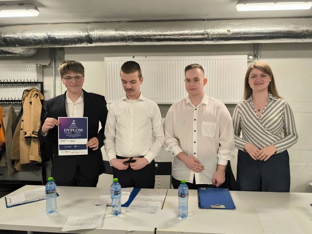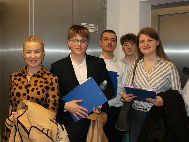 W poniedziałek 20 kwietnia 2026 roku w Gdyńskim Centrum Kultury odbył się Turniej Debat Oksfordzkich dla szkół ponadpodstawowych zorganizowany przez Młodzieżową Radę Miasta Gdyni. Naszą szkołę reprezentowało czworo mówców: Victoria Rydzik (z kl. 3 K), Jakub Kostrzewa (z kl. 3 K), Konrad Michalunio (z kl. 2 K) oraz Piotr Januka (z kl. 2 K). Jako zawodnik rezerwowy towarzyszył im Nikodem Murawski z kl. 3 aL. Opiekunem drużyny jest pani Katarzyna Wojciechowska.